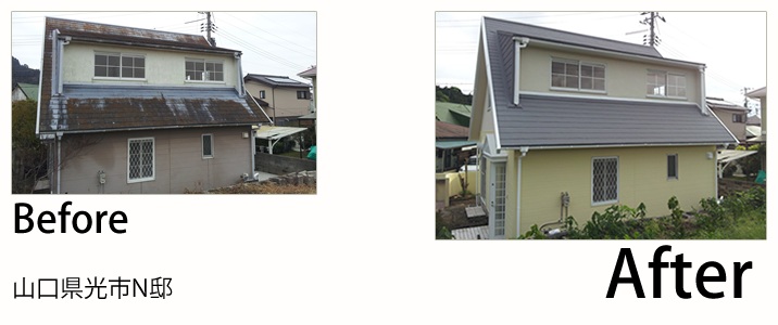 - 以前まで御主人様が塗装されていたのですが、お歳を召されて屋根に上がれなくなったいうことで、ご依頼頂きました。この度は屋根以外にも、外壁、軒天、樋などの新設工事もご依頼頂きました。新築になったと、お客様も喜んでおられました。佐伯塗装では、塗装以外にも大工工事、板金工事、左官工事、内装工事など様々な工事もやっております。腕のいい職人を揃えてますので、小さい工事から大きい工事まで、お気軽にお問い合わせください。