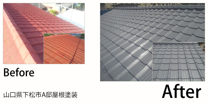 - 一度塗装はされていたみたいなのですが、屋根、壁共にかなり痛んでいて、屋根は苔が凄かったので、バイオ洗浄をしました。苔は根本から殺してしまわないと、また発生してしまうので、苔が沢山はえている屋根にはバイオ洗浄をおすすめしてます。全体的にツートンのランスもよく明るい印象に仕上がりました。