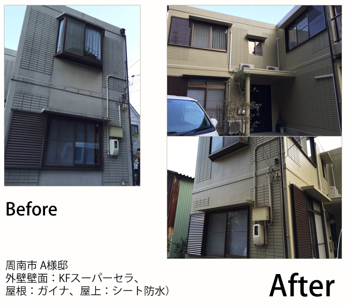 ホームページからのお依頼で3社の相見積もりの中で当社を選んで頂きました。耐久性のいい当社の無機塗料KFワールドセラでご提案させて頂きました。