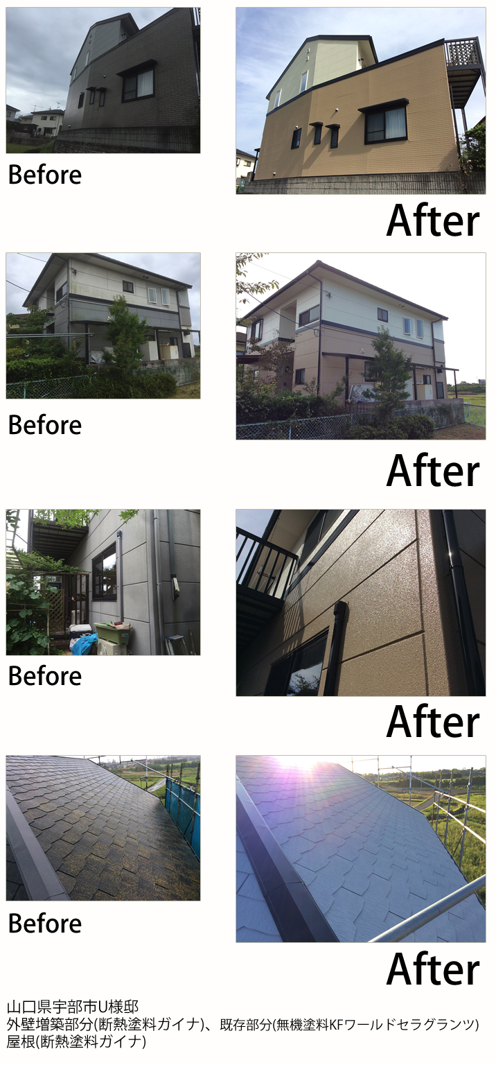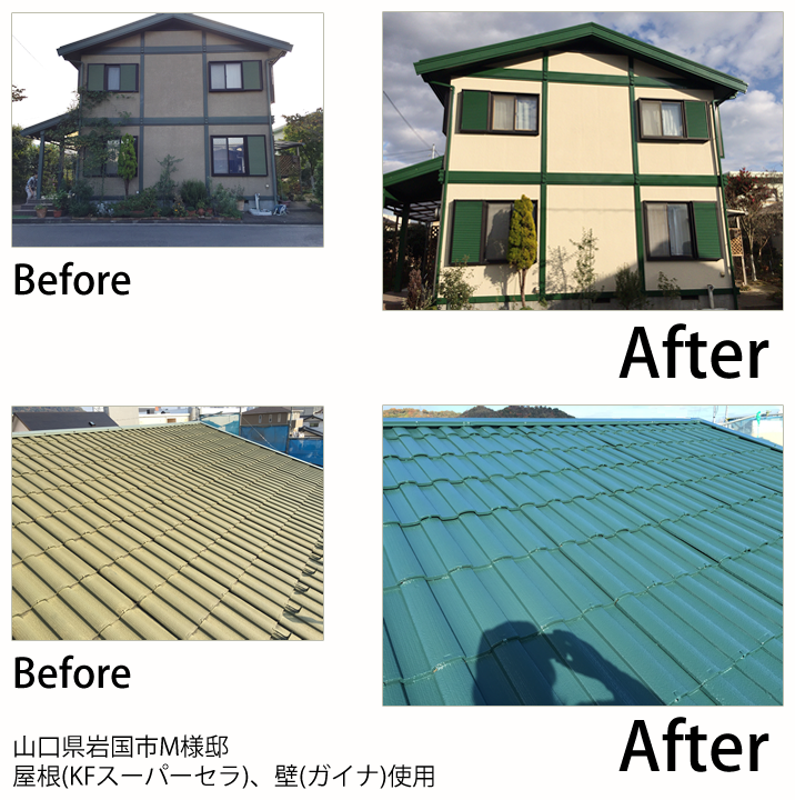 - 屋根(断熱塗料ガイナ)、壁(KFスーパーセラグランツ)