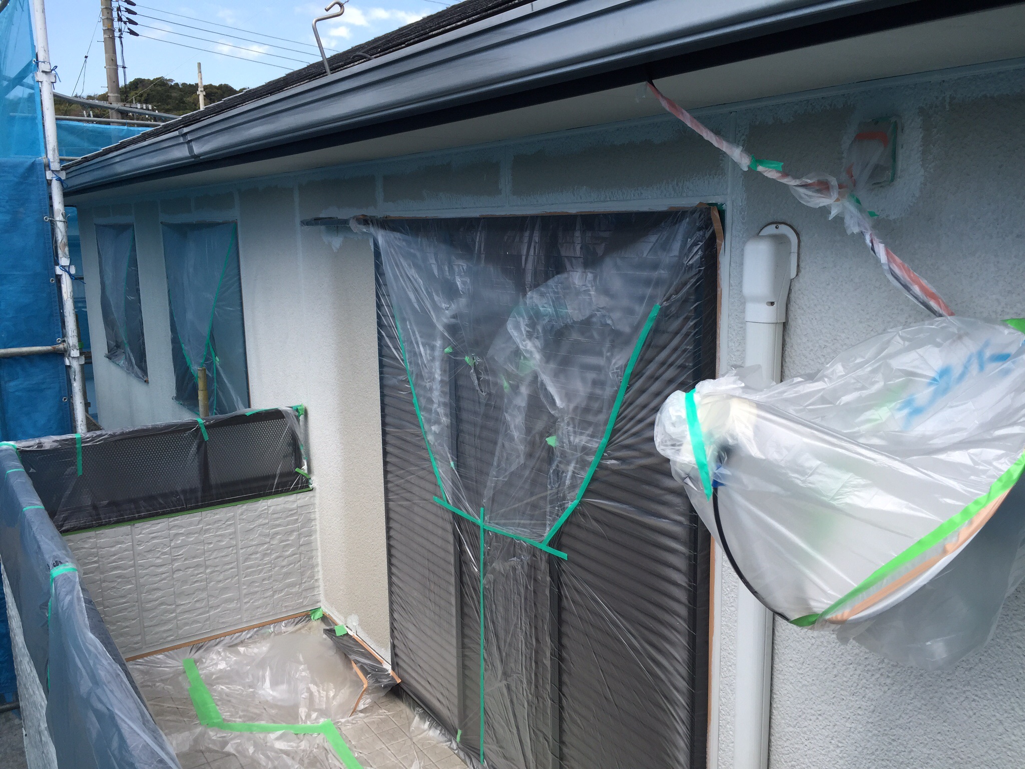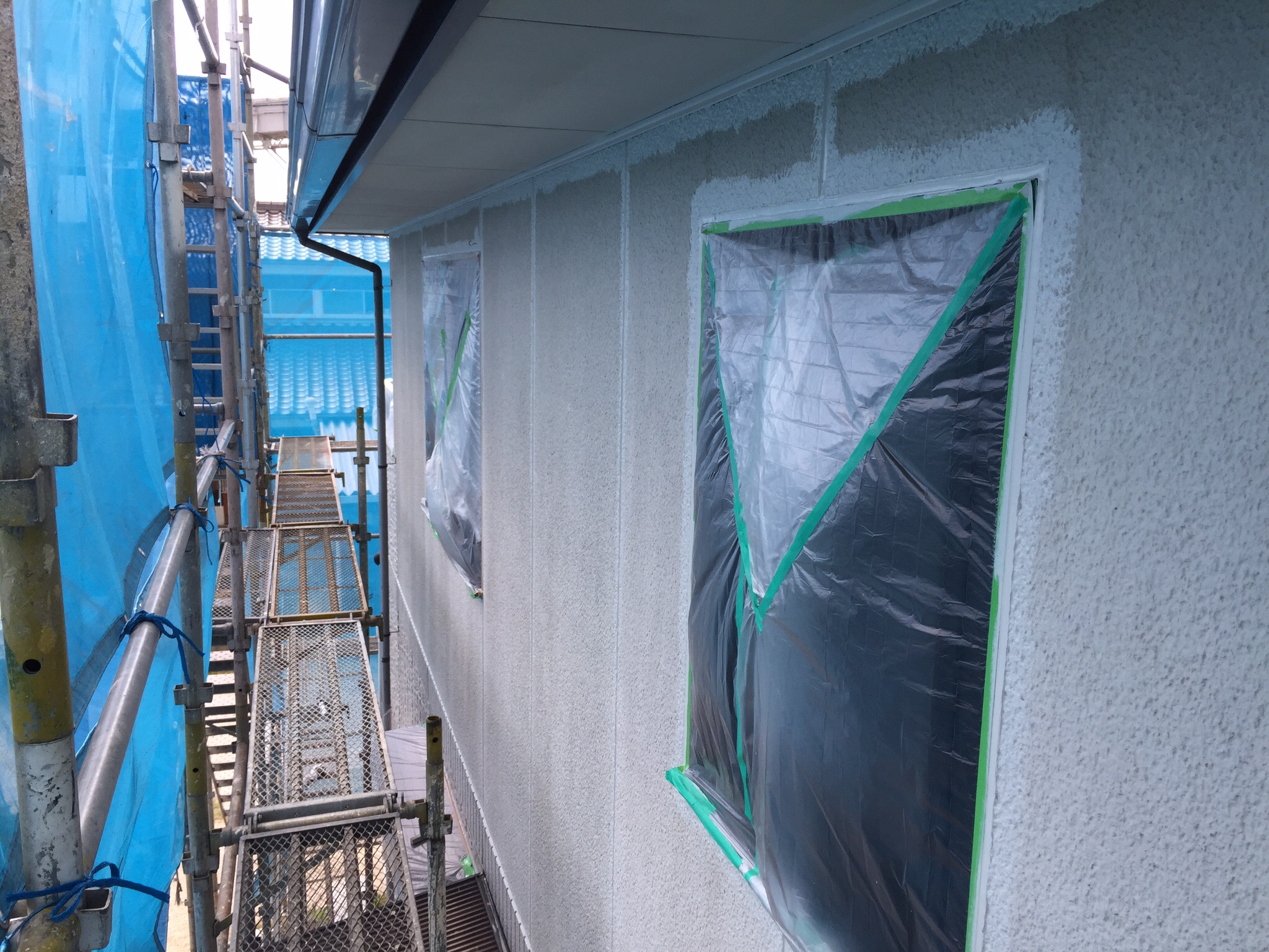 今日は日曜日ですが、昨日は窓などの養生作業を行ったので、壁の下塗り作業などを行いたいと思います。