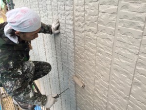 image  昼からは、外壁の下塗り作業をしました。 外壁も屋根同様に無機塗料KFスーパーセラトップで塗装します。 imageimage  最初に専用下塗り材、KFスーパーセラトップP200で下塗りを入れます。 ハケとローラーで均等に塗膜をつけていきます。 ただ塗るのではなく、厚く塗膜をつける事を意識しながら塗装します。 塗装は膜厚が大切と思っていますので、佐伯塗装では手塗りに拘っています! image imageimage  海が近いので、軒天もKFスーパーセラトップで塗装します。 image image錆びたビスは錆止めをしても直ぐに錆が出てくるので、全てステンレスのビスに交換します。 明日は天気が悪いみたいなので、また天気の様子を見ながら作業を進めて行きたいと思います。 今日もお疲れ様でした!