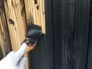 今回は焼杉壁をガードラックアクアという水性系の防腐剤で塗装します。