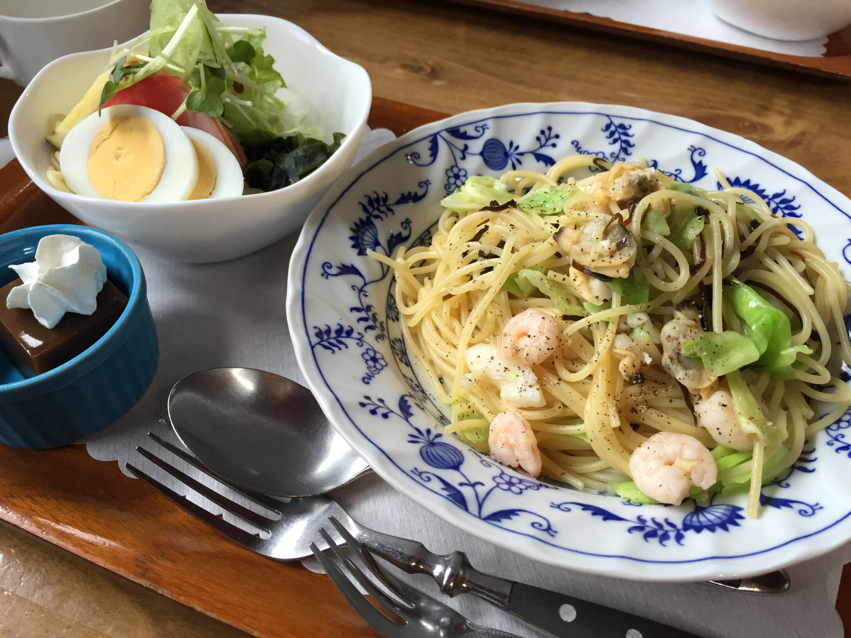 今回はランチメニューのキャベツのシーフードパスタランチを頼みました。
