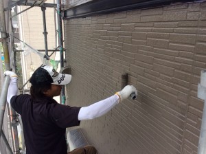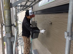 今回は無機塗料KFスーパーセラトップを使用しますので、高性能プライマーP200で下塗りを入れていきます。