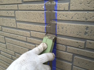 養生作業の後はハケとローラーを使い下塗り作業をしていきます。