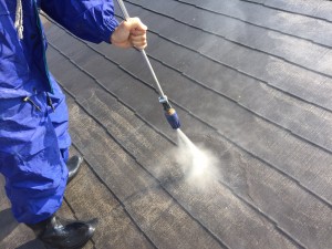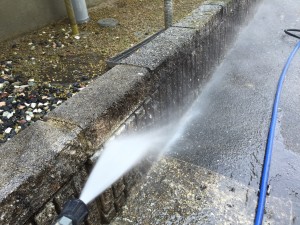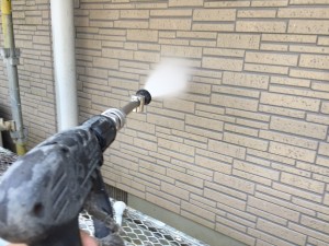 コーキングの打ち替え作業も終わり、1日乾燥養生をして高圧洗浄を行いました。