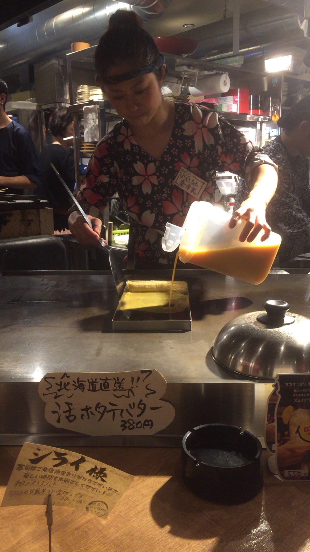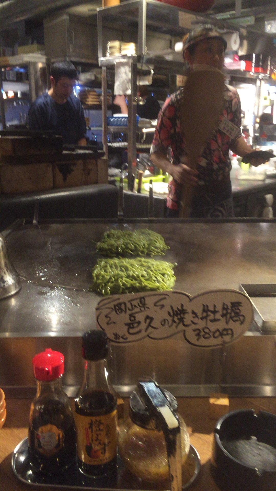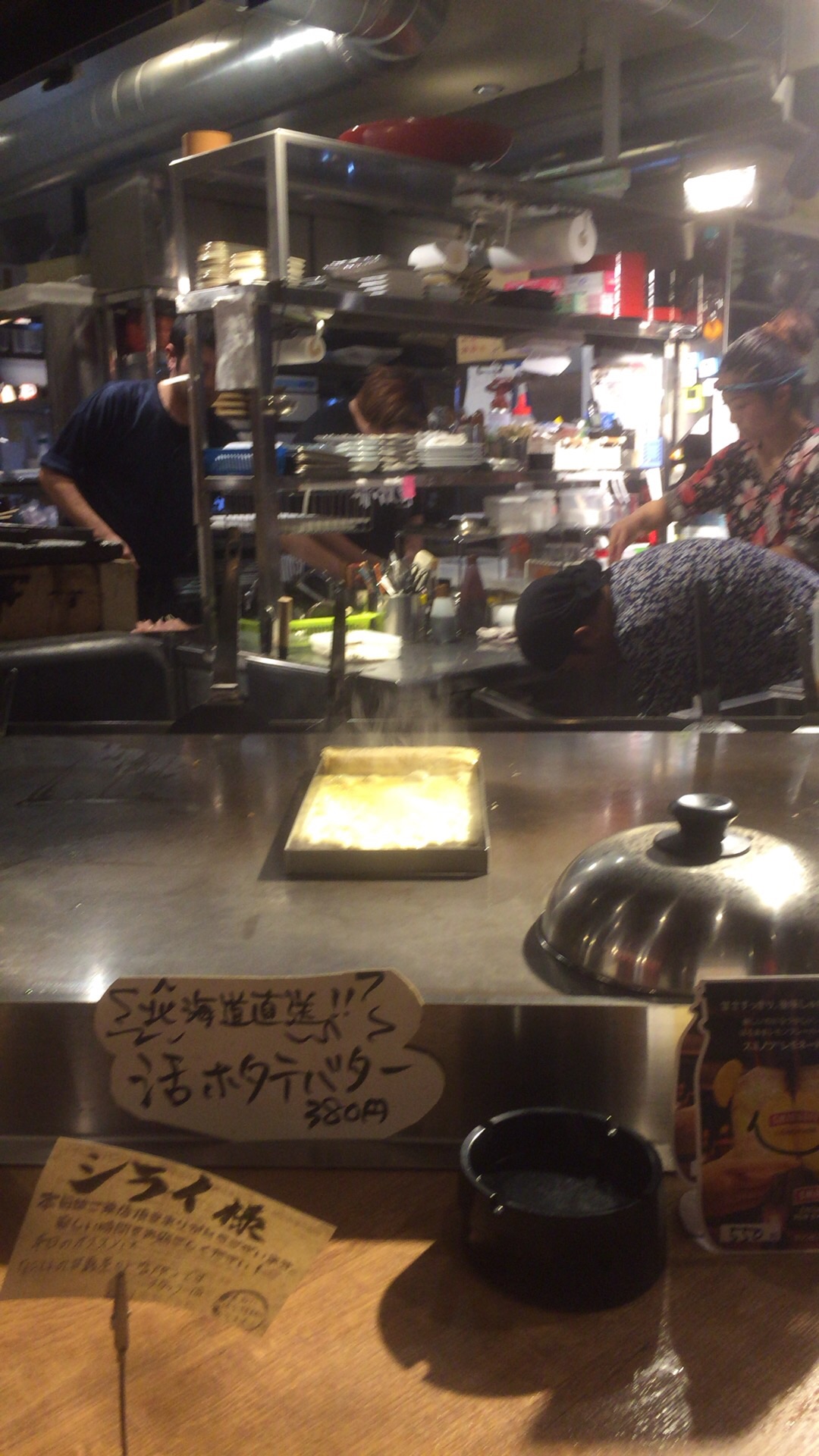 鉄板で焼いてるところはカウンターの真ん中の席が一番見やすいのでオススメです!
