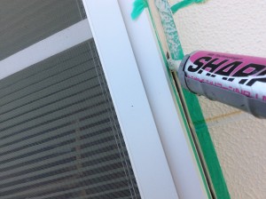 その後シーリング材の密着性を高めるプライマーを塗ります。