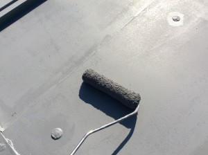 塗膜をつけながら塗装していきます。屋根の鈑金部分もしっかりと錆止め塗装します。