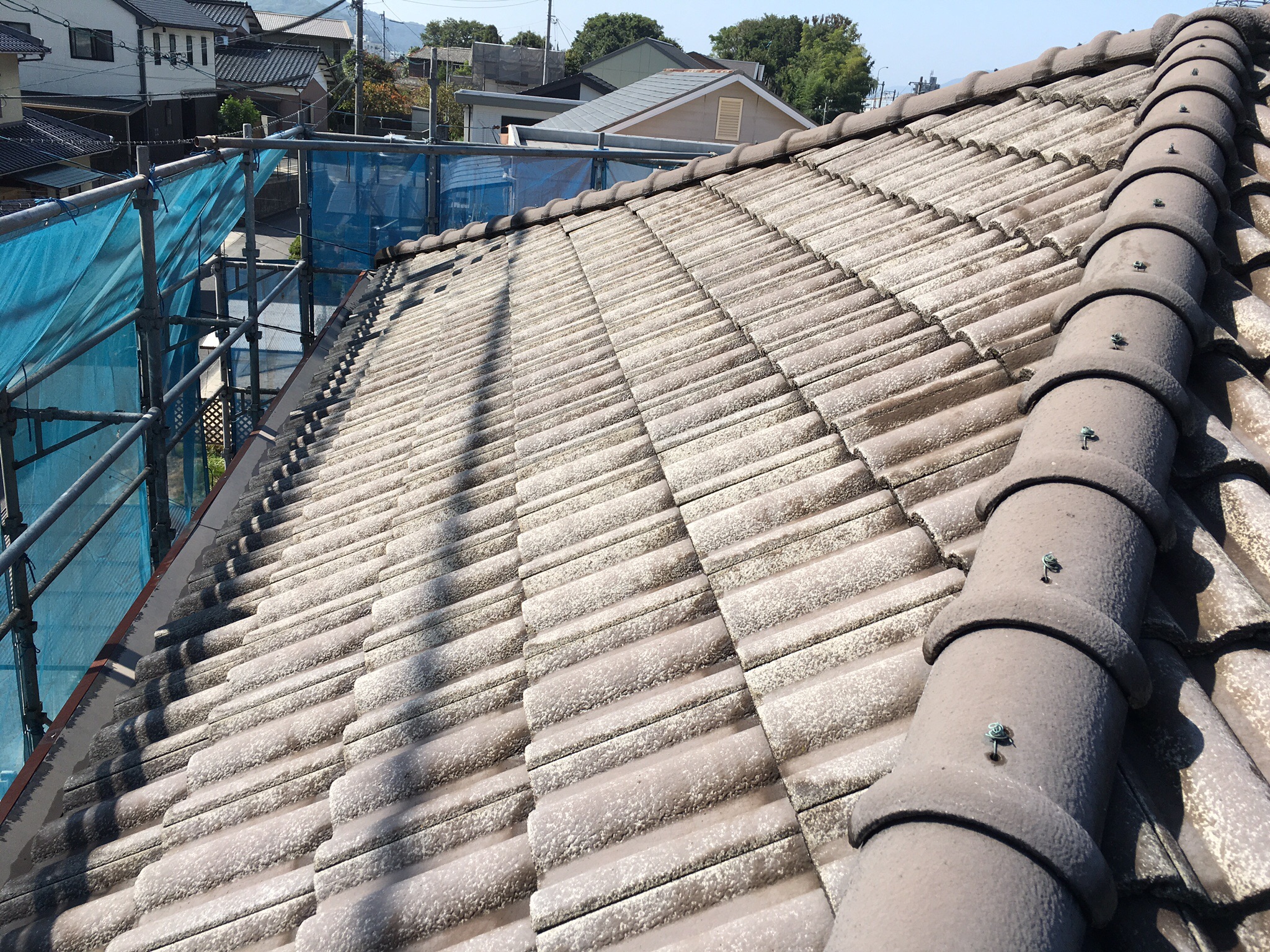屋根はスカンジア瓦なのでしっかりと丁寧に洗浄します。