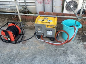 近隣様の迷惑にならないように防音型の高圧洗浄機を使用します。