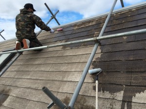 かなり瓦が劣化していたのでシーラーを3回塗りしました。