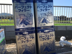 ニッペのパーフェクトフィラーで下塗りを入れます。