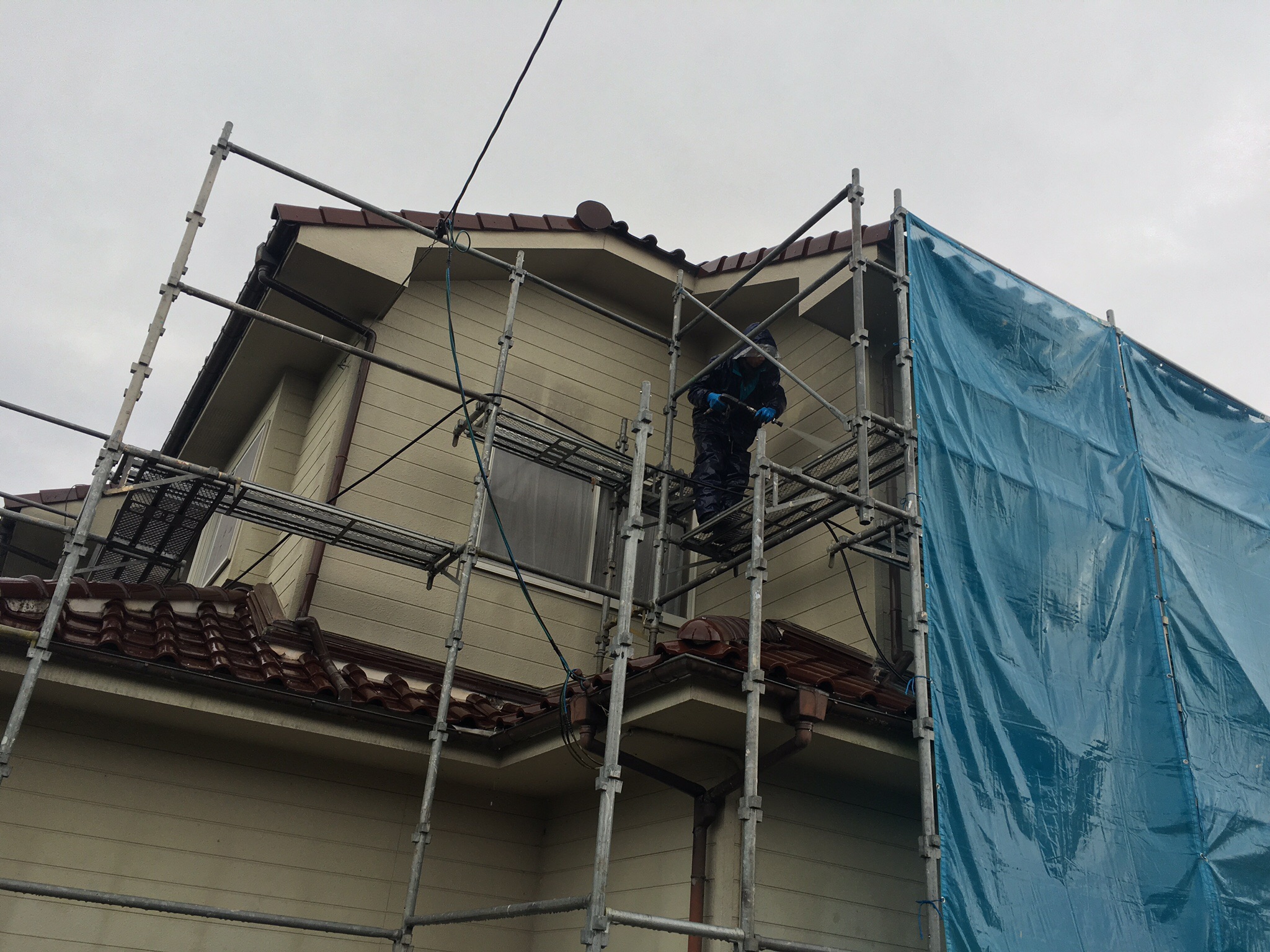 先週の金曜日からの周東町のY様邸の塗装工事が始まっています。