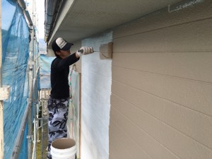 微弾性フィラーと同様にハケとローラーを使用して均等に塗装していきます。