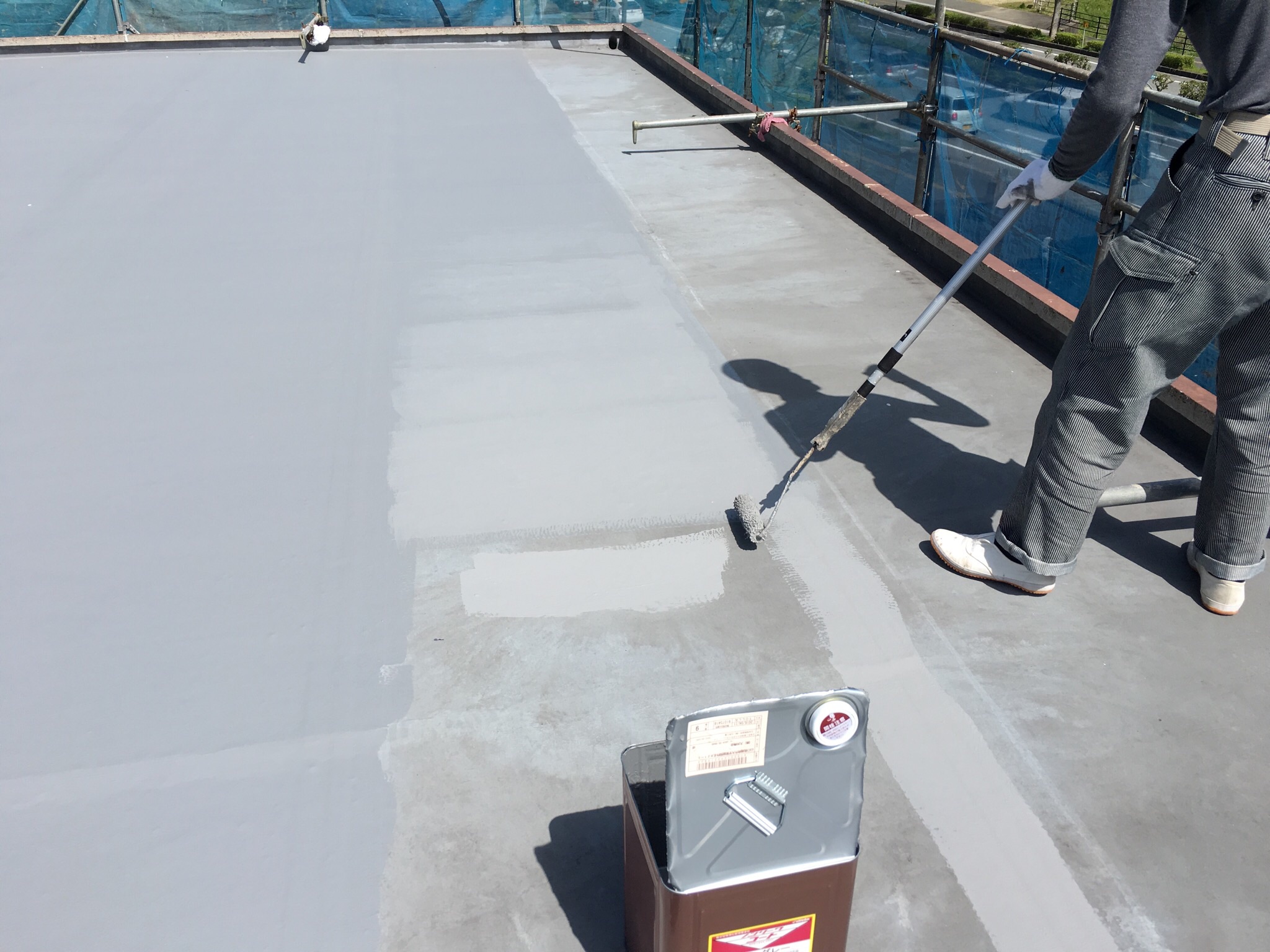防水と同様に厚みをつけるように意識しながら塗装していきます。