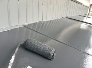 微弾性フッ素塗料で中塗り作業をしていきます。