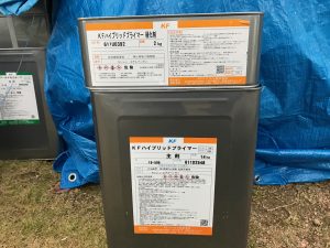 KFハイブリッドプライマーを使用して外壁の下塗り作業は全て終わりました。