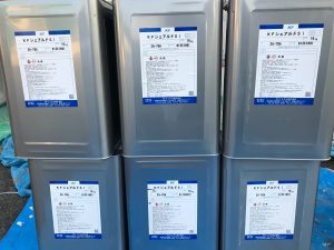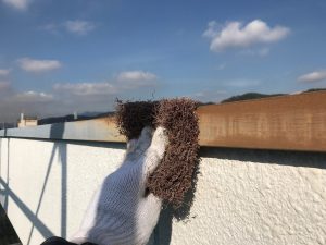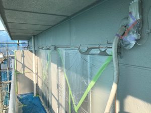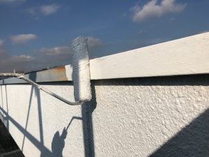 ベランダ外壁の中塗り作業と板金の錆止め作業を行いました。