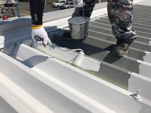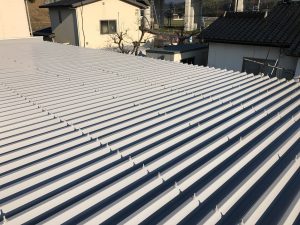 周東町の折半屋根塗装工事も順調に進んでいます。
