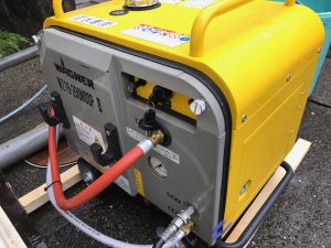 ワグナーの防音型高圧洗浄機を仕様して作業を行いました。