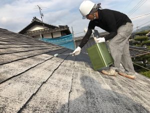 かなり屋根が痛んでいるので一回目は塗ったか塗ってないか