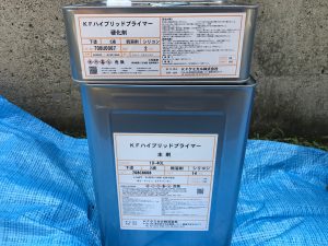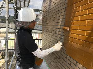 シーリングの打ち替え作業と外壁の下塗り作業を行いました。