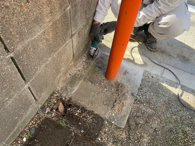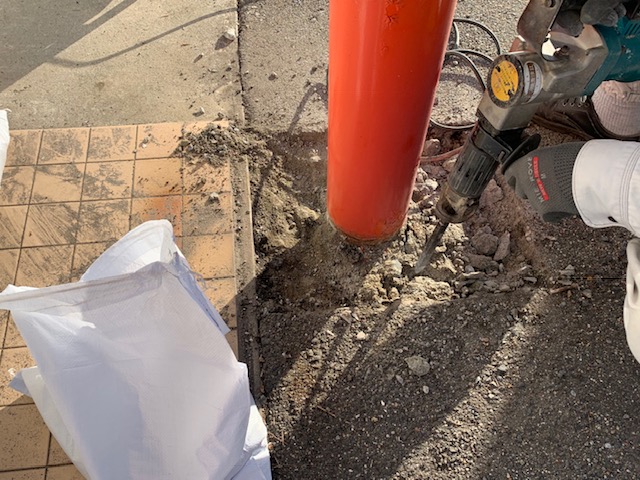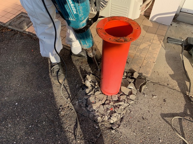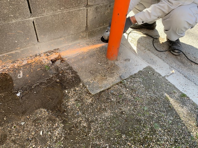 削り易い様に、コンクリートと既存の支柱を切断していきます。