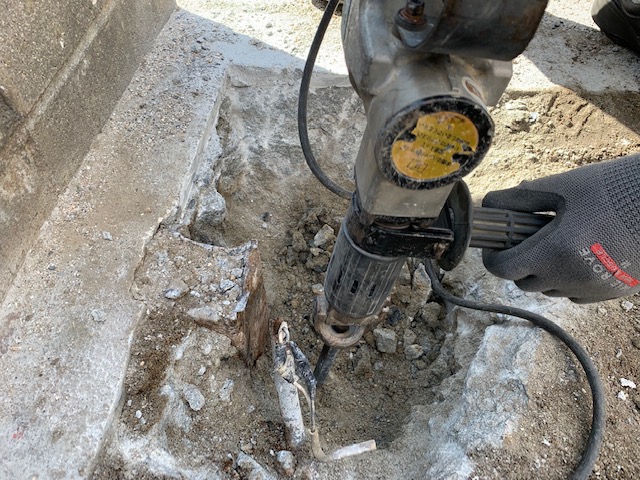 小さいハツリ機も使い、細かく規定の深さになる様に慎重に削ります。