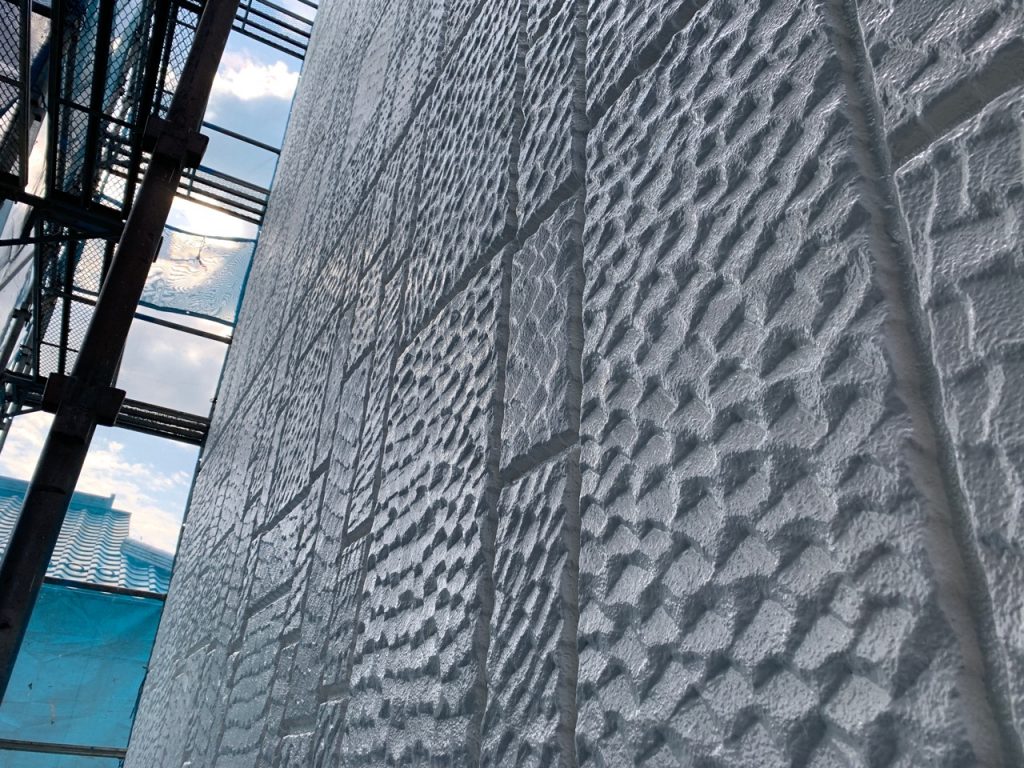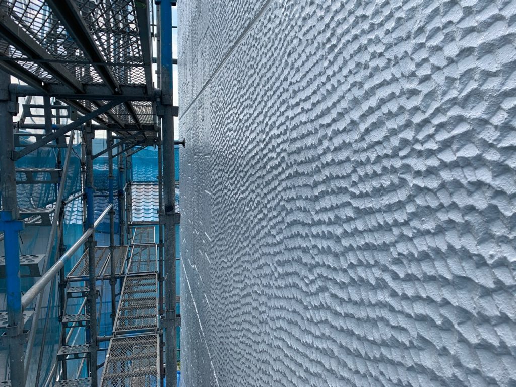 土曜の周南市アパートの作業内容ですが、パラペットの上塗り作業と外壁の東面と西面の上塗り作業をメインに進めて行きました。