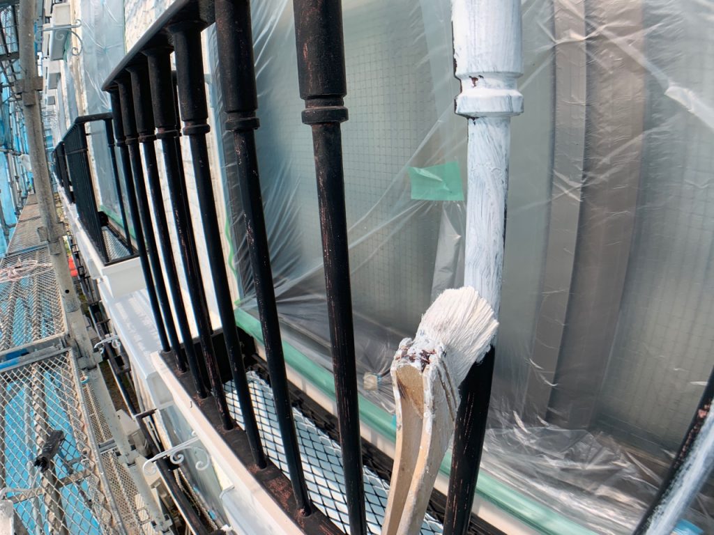 今日の周南市アパート塗装工事の作業内容は南面の鉄部の錆止め作業を行いました。