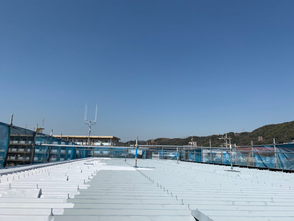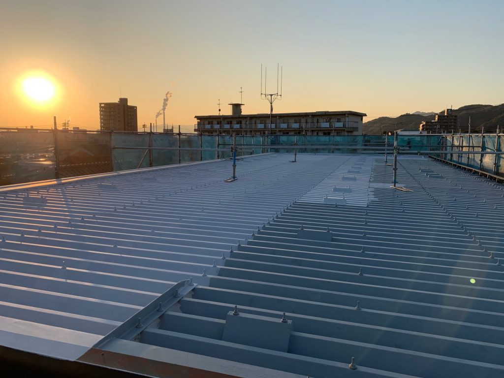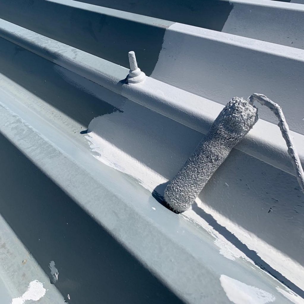 今日の周南市アパートの現場作業は折半屋根の錆止め塗装を行いました。