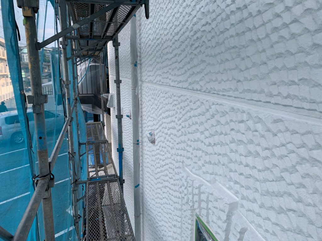 今日の周南市アパート塗装の作業内容は養生作業と外壁の下塗り作業を行いました。