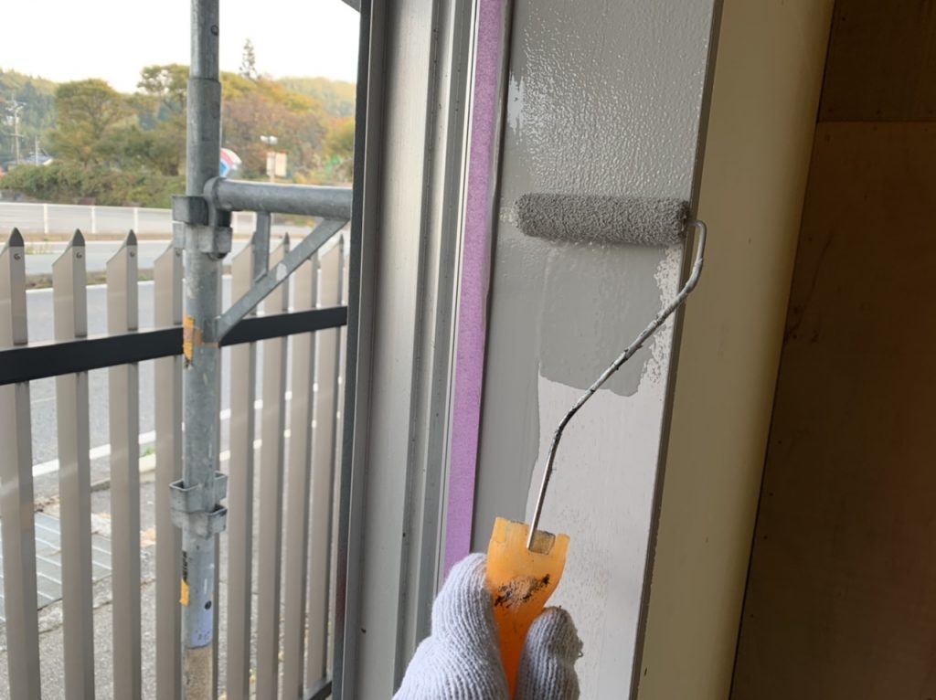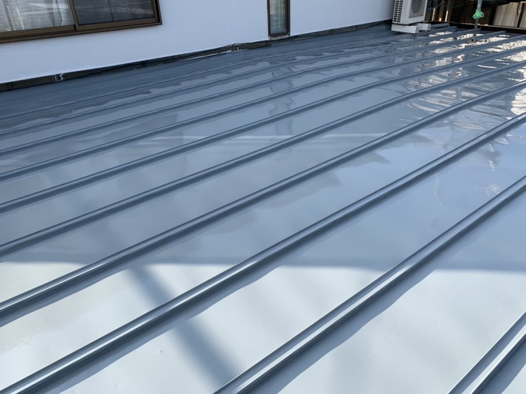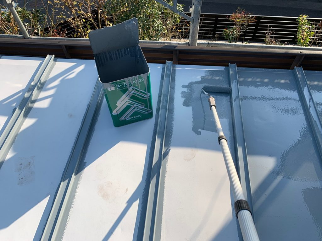 今日は下松市S様邸のトタン屋根の中塗り作業を行いました。