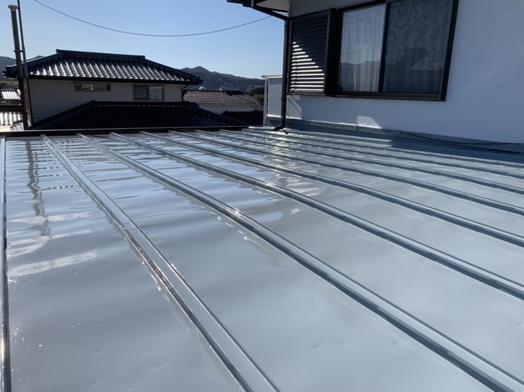 本日の下松市S様邸の塗装作業は雨戸塗装とトタン屋根も上塗り作業を行いました。
