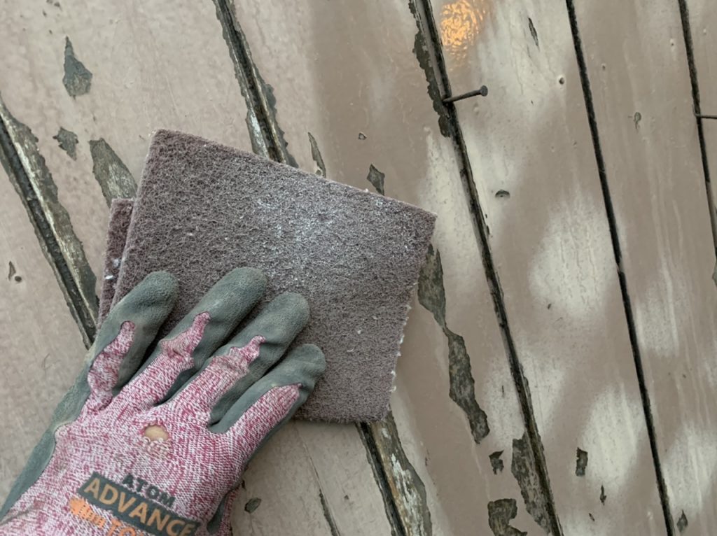 今日は劣化した塗膜を剥いだり、擦ったりするケレン作業を行いました。
