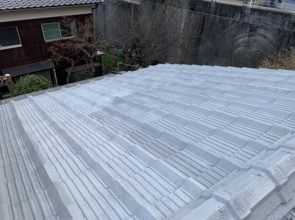 今日の周南市U様邸の塗装作業はセメント瓦屋根の下塗り作業を行いました。