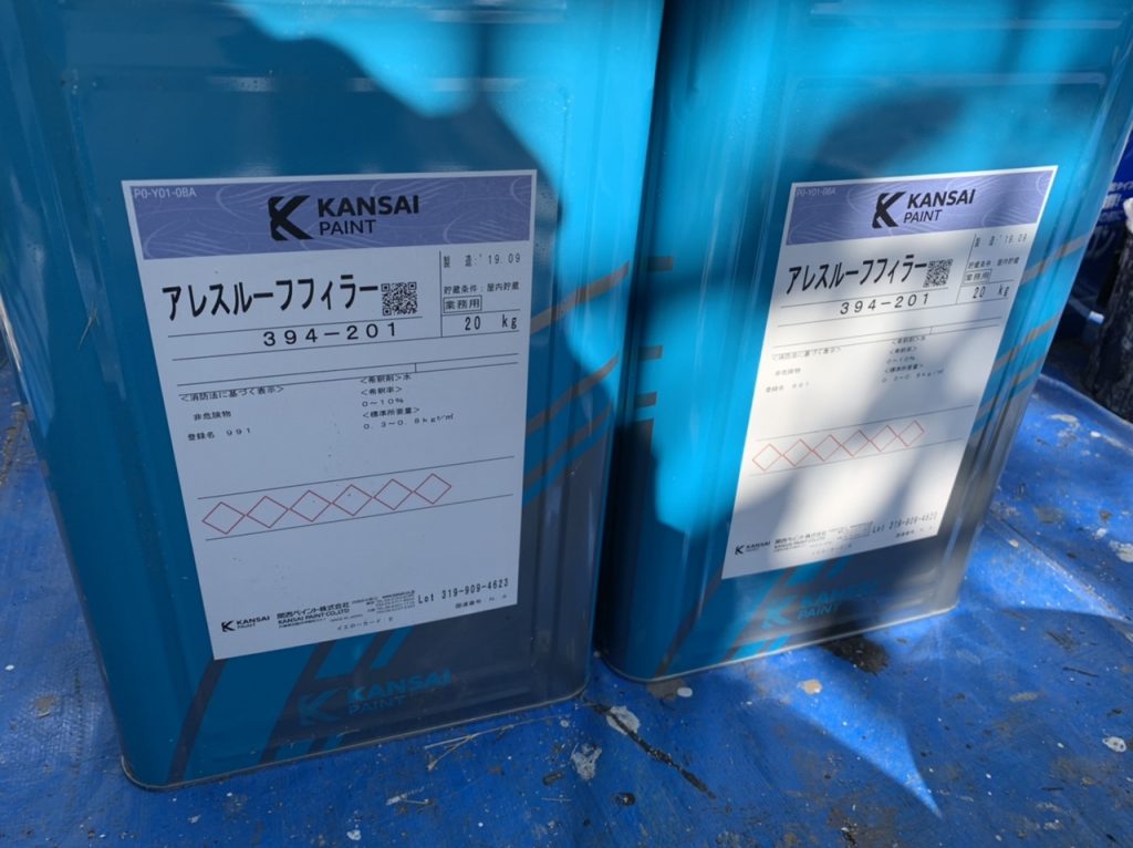 通常状態が悪く無ければ、シーラーだけでもいいのですが、セメントが剥き出しの箇所も沢山あり状態が良くなかったので、今回はシーラーを塗装した後に下地調整のアレスルーフフィラーを塗装しました。