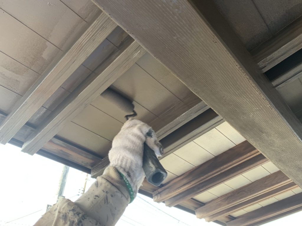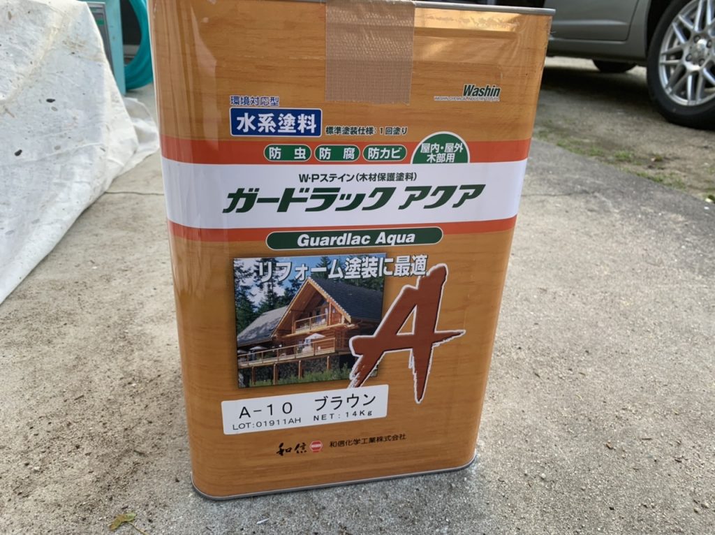 焼杉、破風板、軒天などはガードラックアクアを使用して塗装していきます。