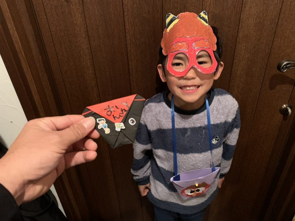 ちょっとお面の目の所が空き過ぎな気が……。(笑)