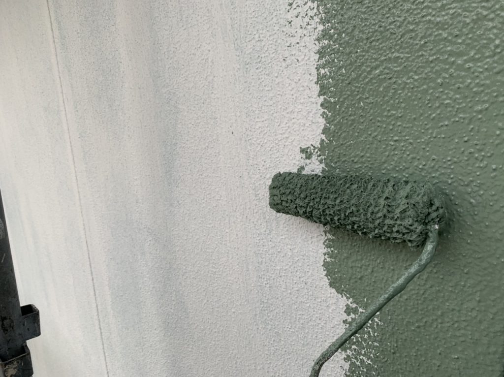 光市F様邸の塗装工事は昨日と今日で外壁の中塗り作業を行ないました。