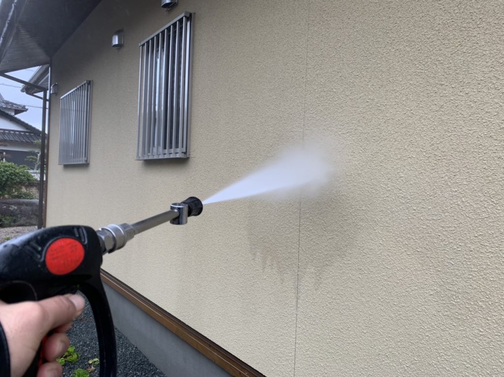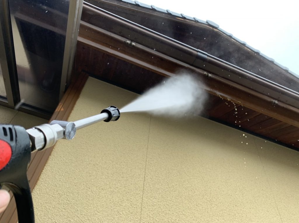 雨の日の高圧洗浄作業は周りの家を気にしなくていいので、遠慮無く洗浄を行えます😌