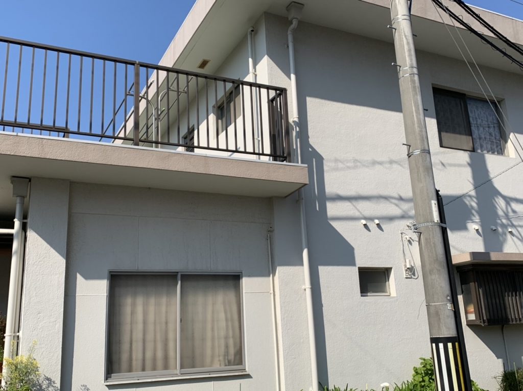2軒並びの家なのですが、コンクリートで出来ている家の方は予算の関係で水性シリコンで塗装しているのですが、太陽光がよく当たってる場所はチョーキング現象が起きていました😥