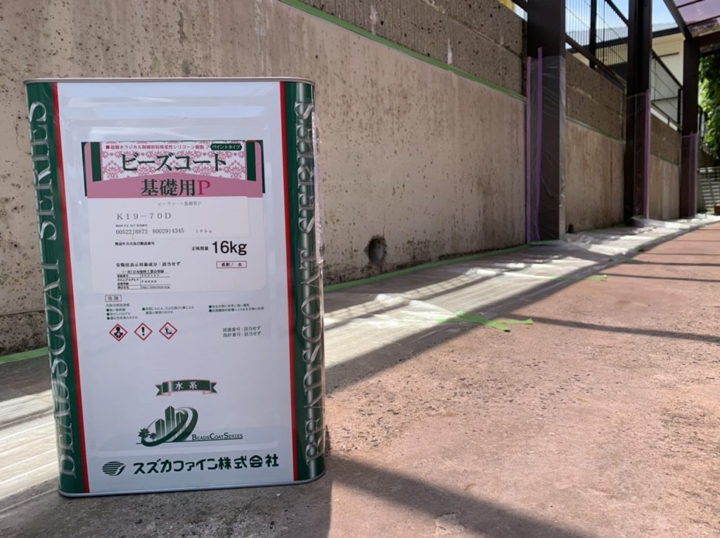 今日はスズカファインさんのビーズコート基礎用Pを使って塗装します。基礎やブロック塀は湿気が多いので、普通の塗料で塗装してしまうと、剥がれの原因になってしまうので、透湿の良い専用塗料で塗装される事をオススメします😌