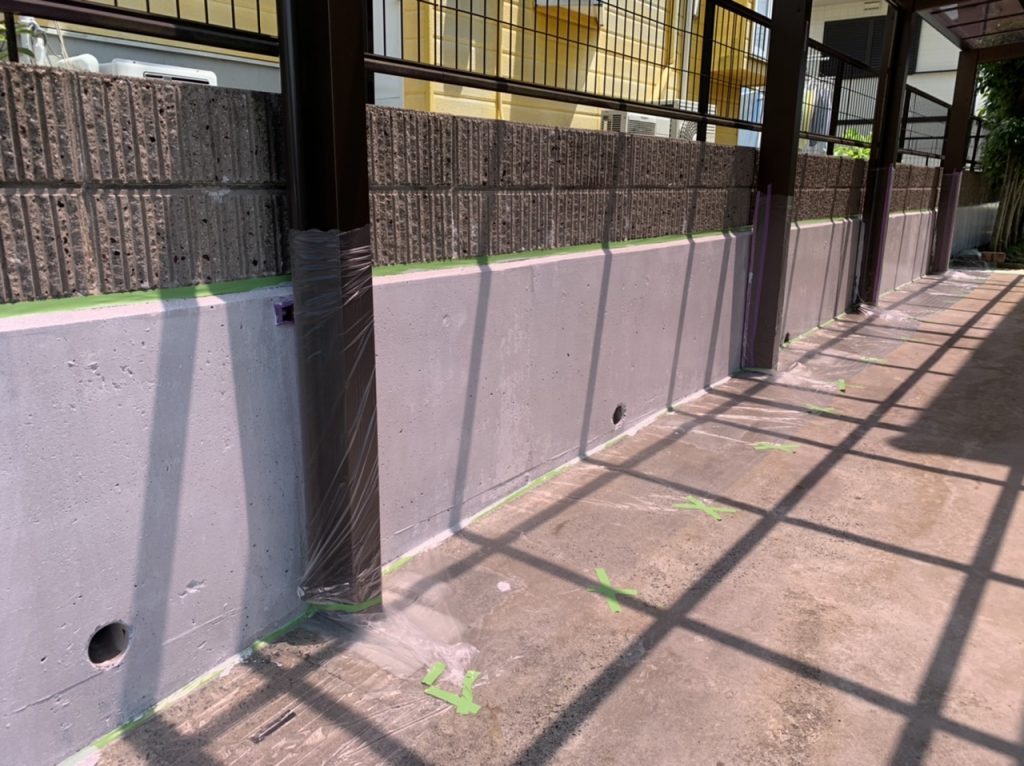 今日は少し前に施工させて頂いた室積の現場の追加工事で、基礎塗装を行いました。
