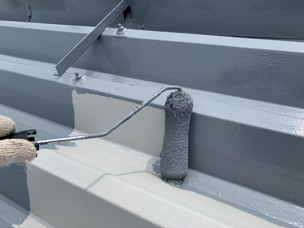 天気を様子を伺いながら、折半屋根の塗装を進めています😌