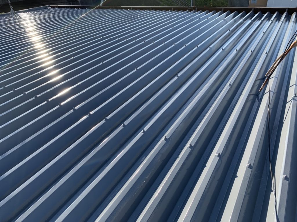 雨が続いて折半屋根塗装が止まってましたが、どうにか半分仕上がりました!😄👍