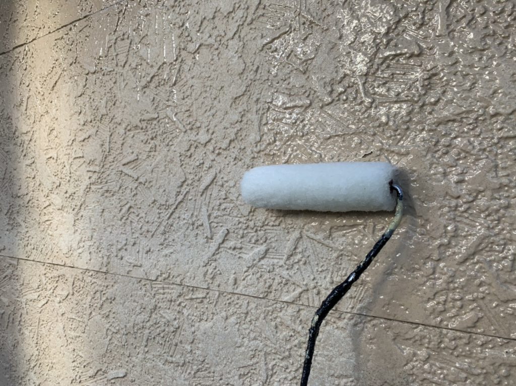 シーリング作業も全て終わり、今日はシーリングの乾いてる面から養生作業と下塗り作業を行いました。