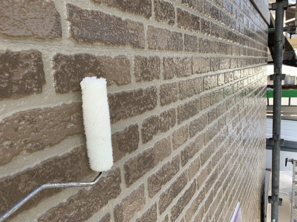 下松市S様邸の塗装工事、もう少しで完成です!レンガ調サイディングは状態が良かったので、無機塗装KFワールドセラグランツ クリヤー仕上げです。艶を落とさず、ピカピカの方が耐久性はいいのですが、あまりピカピカすると安っぽく見えますので、お客様には5分艶をオススメしています。